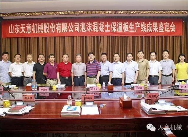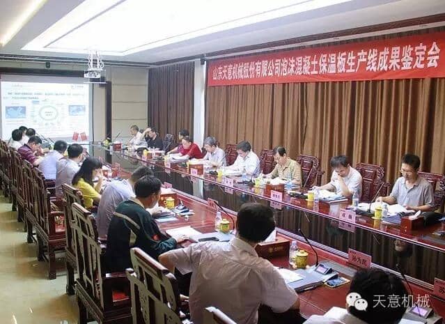 為加快產業(yè)結構轉型升級,突出科技創(chuàng)新驅動企業(yè)發(fā)展,7月23日,由山東省機械工業(yè)協(xié)會處長李玉奎帶隊一行領導專家,蒞臨天意機械組織召開 "泡沫混凝土保溫板生產線” 和 “石膏墻板成型機” 科技成果鑒定會。濟寧市兗州區(qū)副區(qū)長周詠輝,集團董事長劉洪彬、技術總監(jiān)陳維國等領導出席了本次會議。