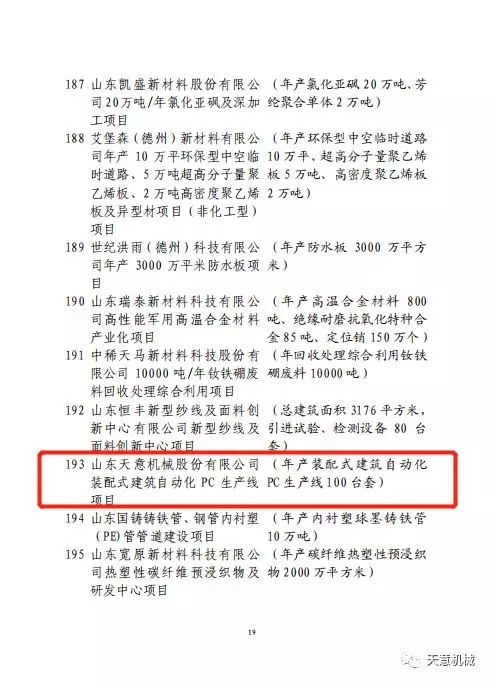 2020年2月 12日,天意機械的裝配式建筑自動化PC生產(chǎn)線項目入選2020年省新舊動能轉(zhuǎn)換重大項目庫第一批優(yōu)選項目。對于優(yōu)選項目省內(nèi)各級政府將會進(jìn)一步加大政策協(xié)調(diào)支持力度,全面落實土地、能耗、用水、環(huán)境容量、資金等“要素跟著項目走”機制,全面建立項目評審綠色通道,簡化審查審批環(huán)節(jié),在依法合規(guī)前提下加快項目手續(xù)辦理進(jìn)度。天意機械的裝配式建筑自動化PC生產(chǎn)線項目入選省優(yōu)選項目,既體現(xiàn)了省政府對該項目的重視,也體現(xiàn)出該項目具有新舊動能轉(zhuǎn)換的先進(jìn)性。