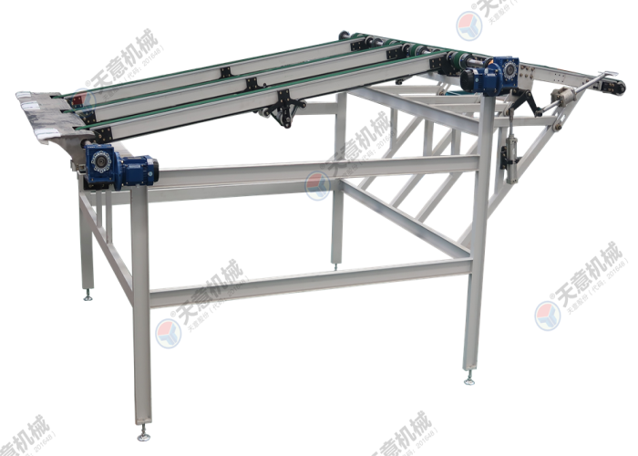 適用于折頁(yè)機(jī)烘干后的出板工序。由拉板輸送和下坡輸送組成